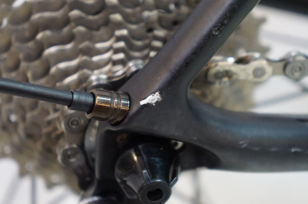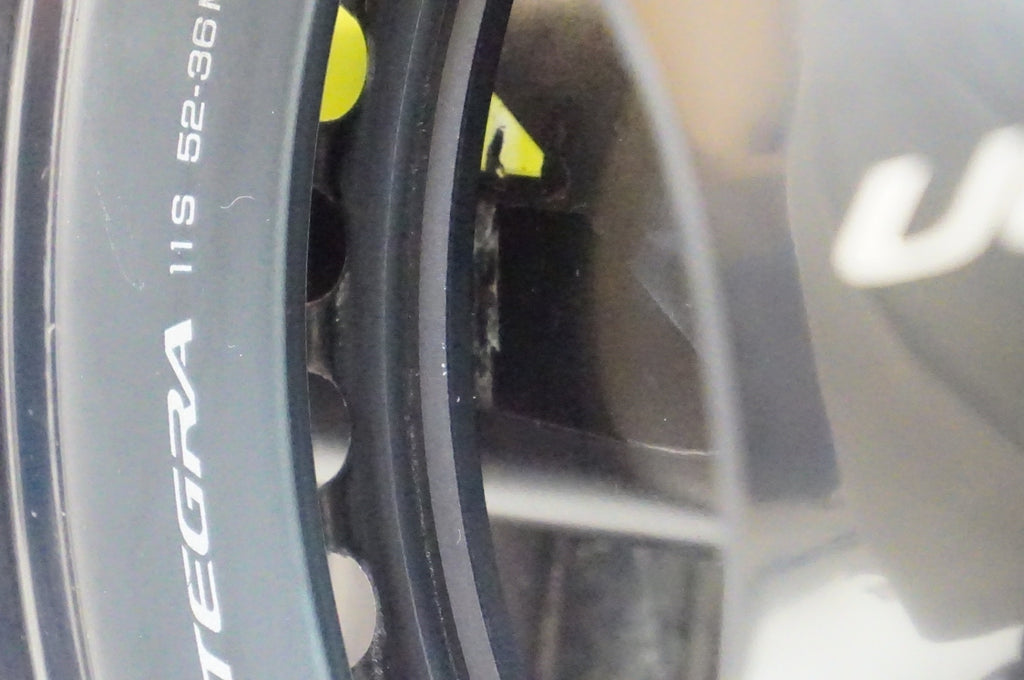 ドライブ側チェーンステーにチェーン落ち傷がございます。クラックには至っておりません。