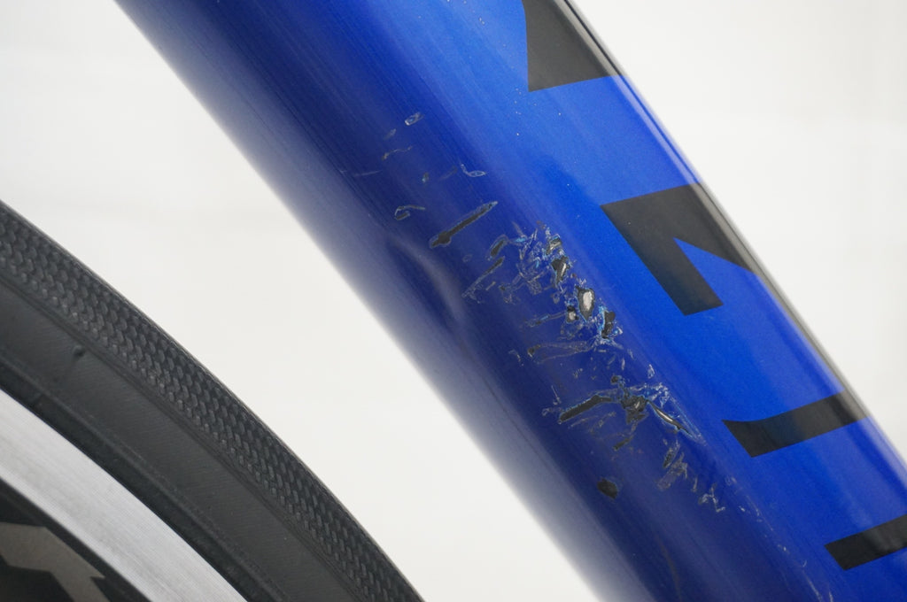 ・ダウンチューブに凹みがございますが、試乗段階では問題はなく現状販売となります。その他キズが多数ございます。