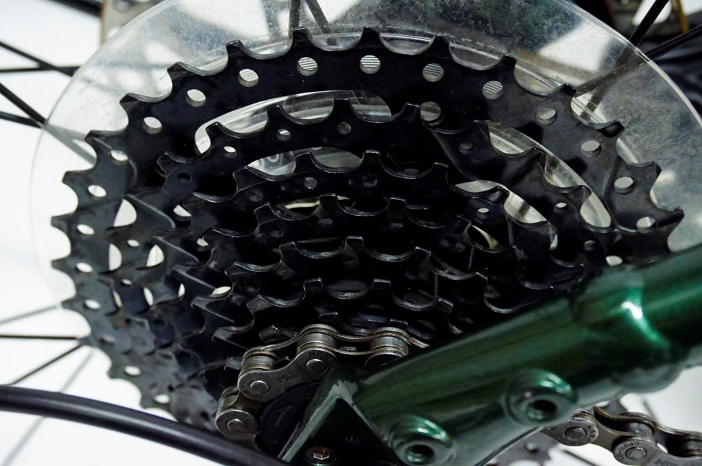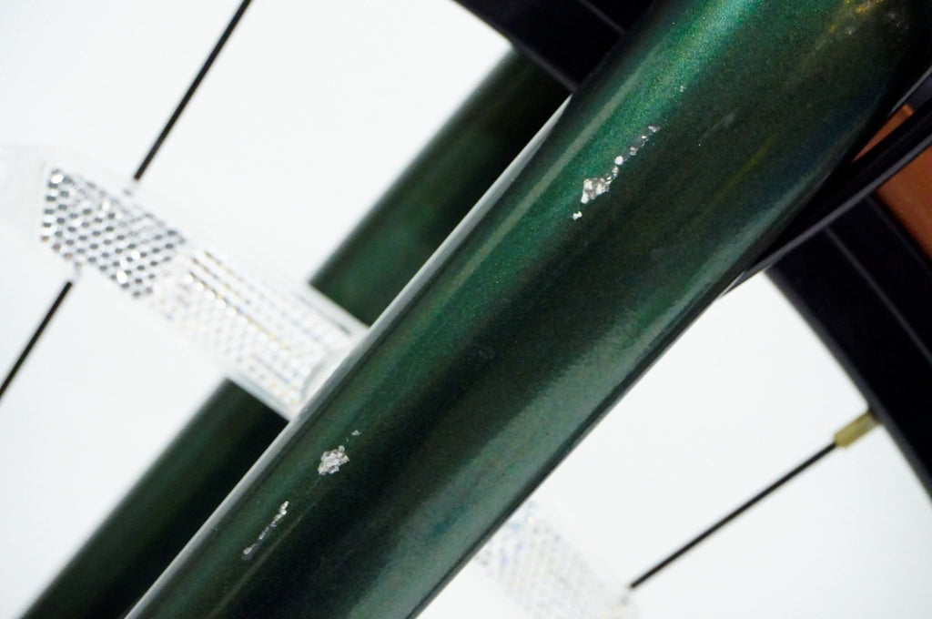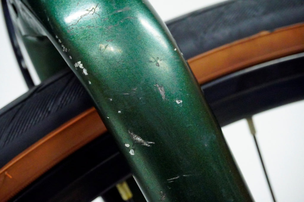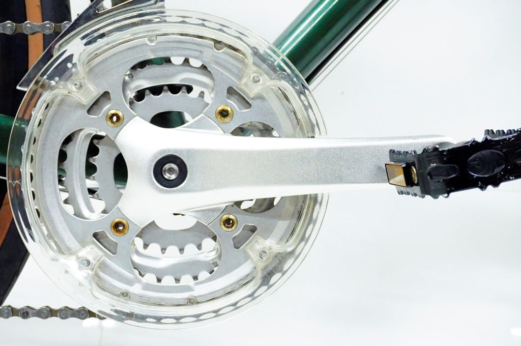 アウターのチェーンリングが振れておりますが、基本的な変速は問題なく、チェーンは新品に交換済みで快適にお乗りいただけます。