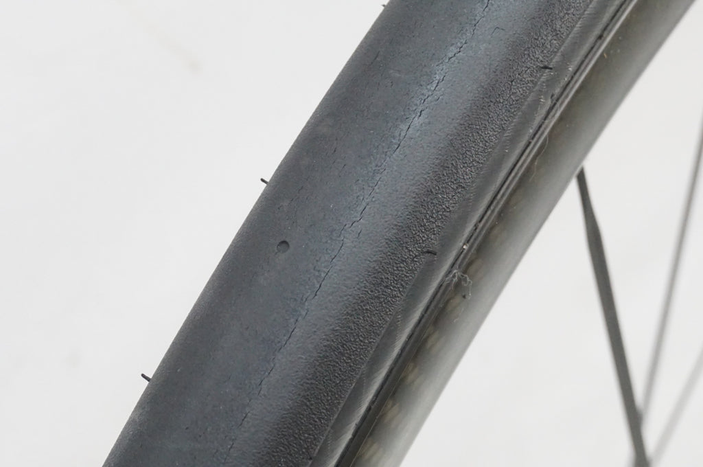 タイヤはリム保護のための緩衝材として装着しております。また、タイヤは消耗品の為保障はございません。