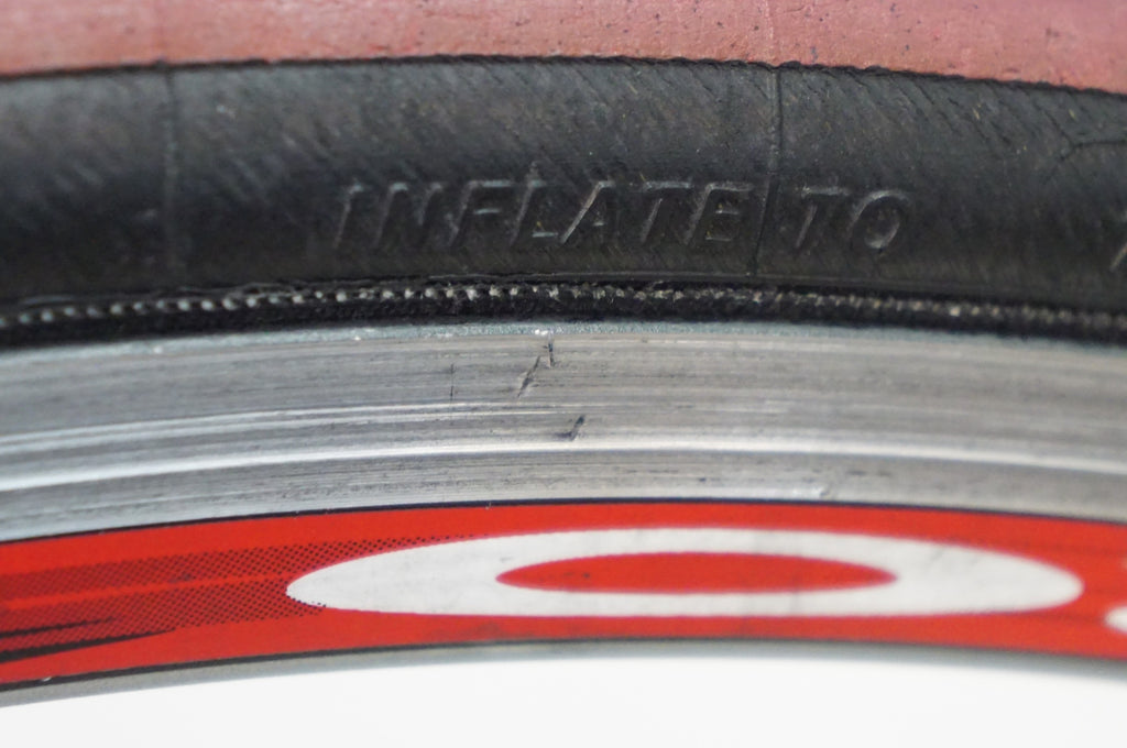 ブレーキ面に傷、スポークにも一部小傷等、全体的にやや使用感がございます。