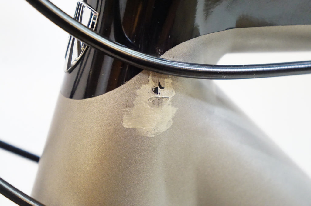ヘッドチューブのワイヤー擦れ傷箇所のタッチアップが目立ちます。