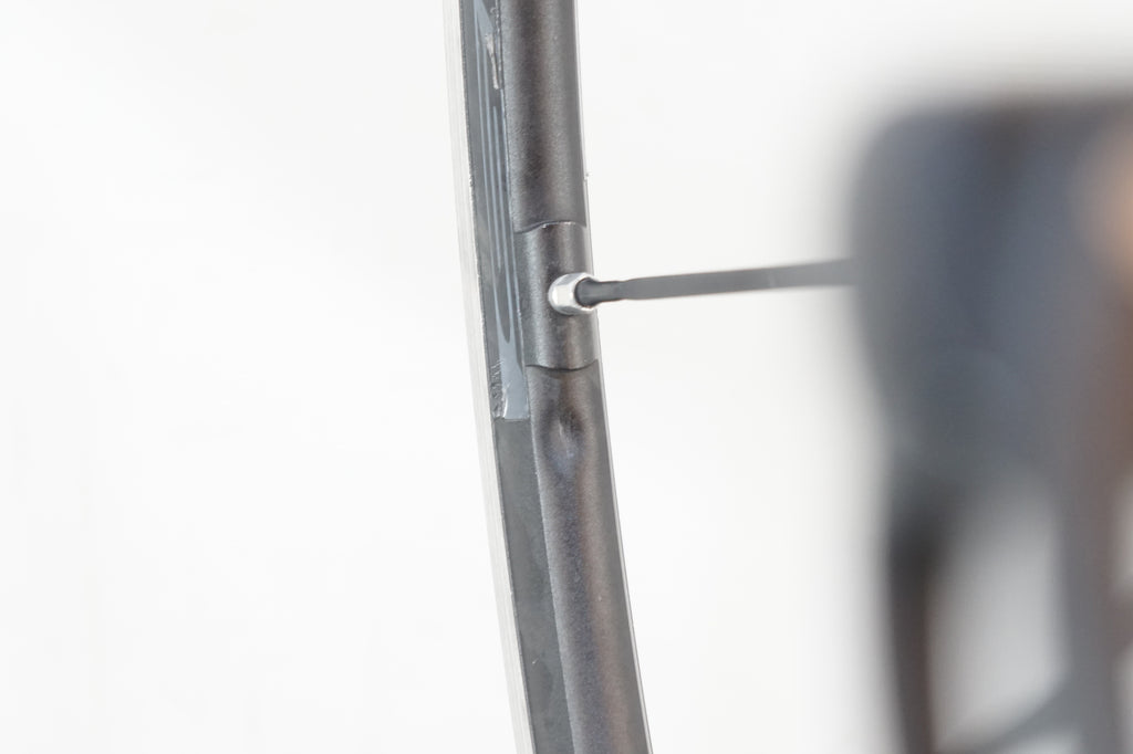 前後共に2-3ミリ程度の振れ、ハブ回転抵抗、ブレーキ面ケズレがございます。