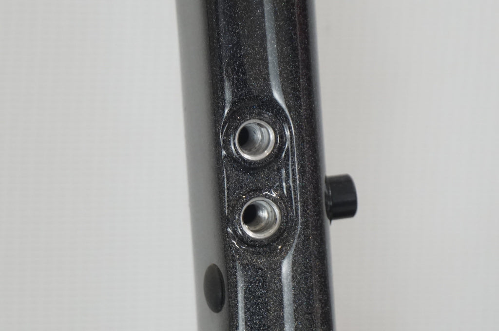 ・フロントディレイラー用の台座がありません、国内代理店に問い合わせたところ2025年12月時点で供給は無く、新品純正部品の入手は不可能です。