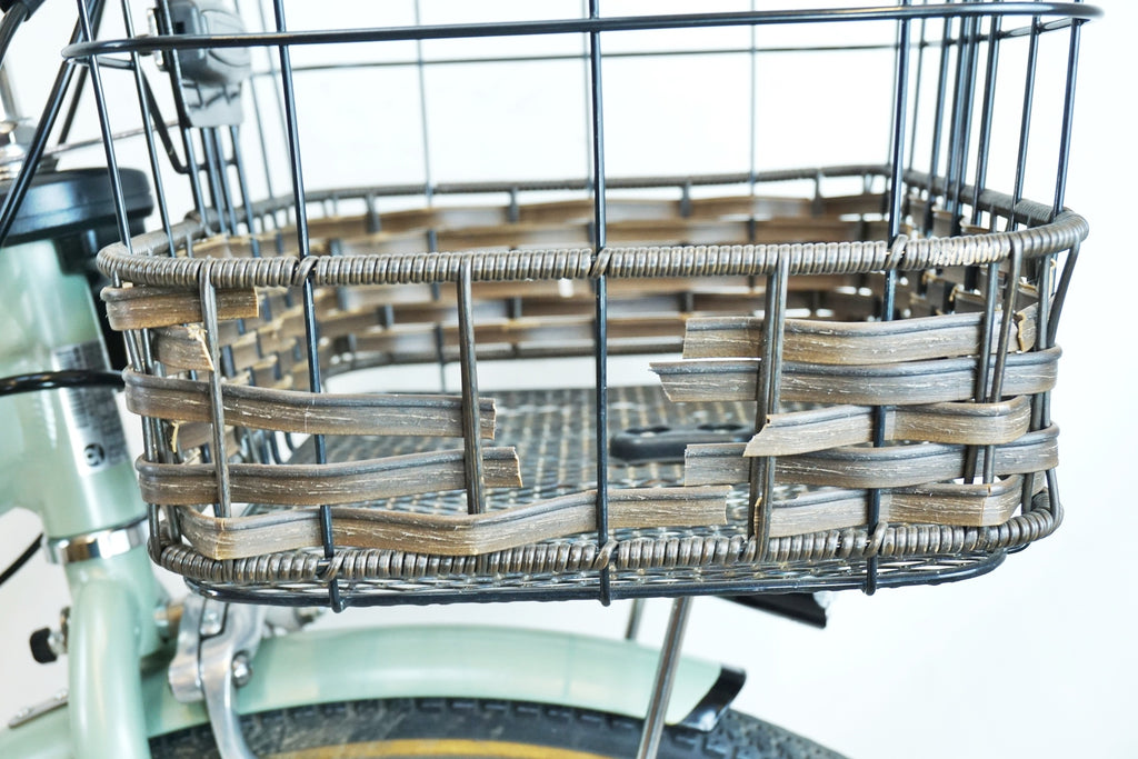 バスケットの籐風の装飾が劣化して割れております。