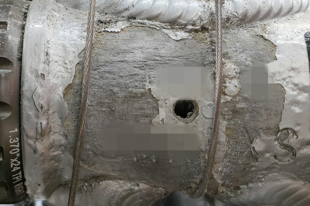 BBシェル下部に広く深い腐食があり強度低下が懸念される為ジャンク品です