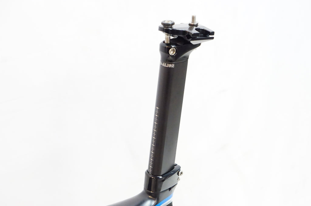 (→シートチューブと平行に測定して BB~サドルレール: 625mm程度までは上げることが可能です。)