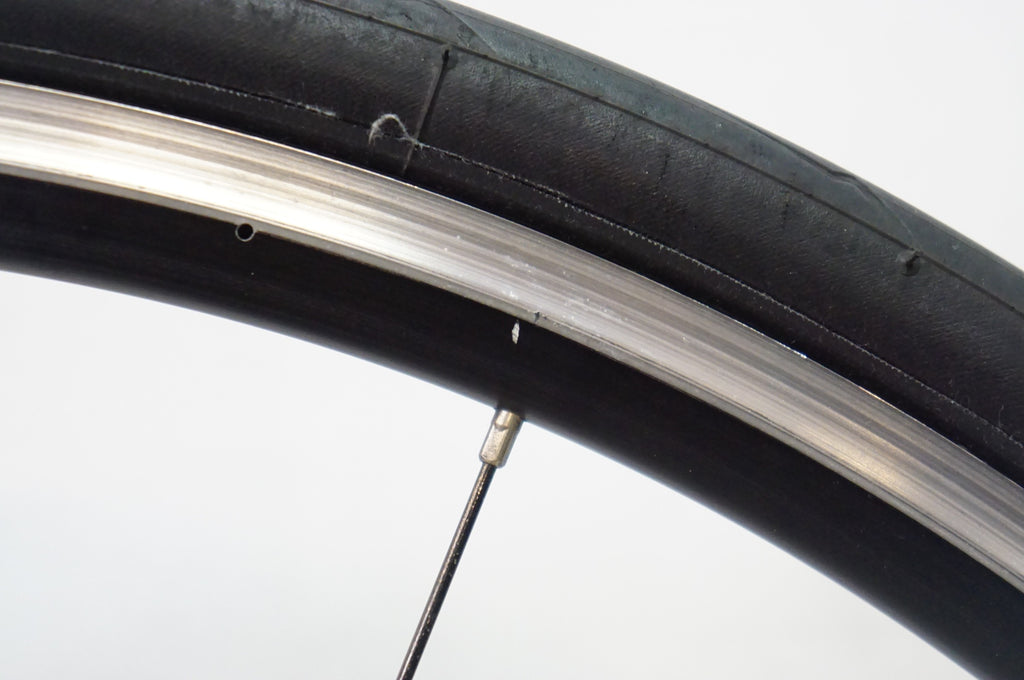 リムの摩耗が目立つためジャンク扱いです。前後ともブレーキ面を手で触れて明らかな摩耗が感じられます。