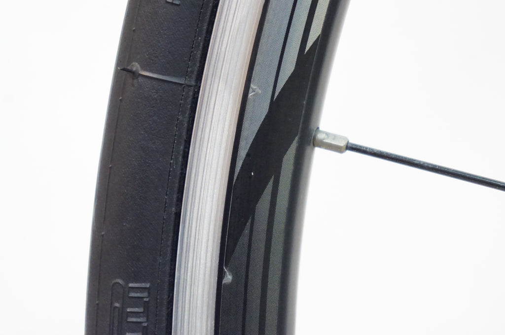 また、リムの摩耗インジケーターはリア側のみごく浅く残っています。フロント側は摩耗で見当たりません。