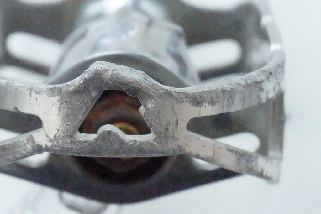 ■状態・使用に伴う傷、汚れがございます。・全体的に酸化や経年によるくすみがございます。・金属部分に一部錆がございます。・ペダルの縁にえぐれた傷跡がございます。・片側軸のカバーナットが欠品してます。・左右ともに若干ガタがございます。